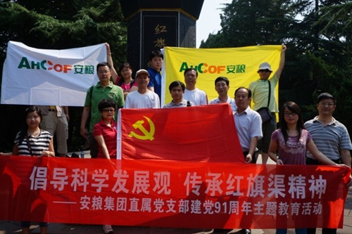 為迎接中國共產(chǎn)黨誕辰91周年,安糧集團(tuán)直屬黨支部于7月1日組織新老黨員、入黨積極分子一行15人赴河南林州紅旗渠開展以“倡導(dǎo)科學(xué)發(fā)展觀,傳承紅旗渠精神”為主題的深入學(xué)習(xí)實(shí)踐科學(xué)發(fā)展觀主題實(shí)踐活動。