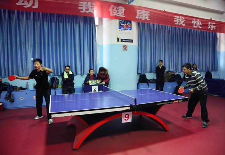 本屆比賽團體項目中,帶傷出征的陳建軍率領新隊員王豹、胡松先后與省進出口公司、達豐公司、輕工公司、技術公司等幾支隊伍展開爭奪。由于賽程安排緊密,選手們從比賽乍一開始便展開了激烈的乒臺對話。你削一個弧線,我推你一板,你擺開架勢扣我一分,我瞅準機會回敬你一球。乒乒乓乓,有如沙場交兵,難分高下;乓乓乒乓,場外掌聲雷動,此起彼伏。經過四輪精彩紛呈的賽場較量,安糧集團代表隊成功突圍進入八強,并最終獲得第四名。