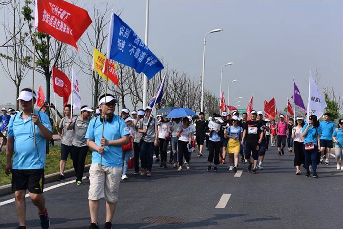 八點四十點,毅行正式開始,包括安糧期貨在內的超過70支毅行隊伍在各自單位的隊旗引領下,手舉印有投保標語的旗幟,浩浩蕩蕩踏上了濱湖環湖大道。本次毅行從濱湖新天地出發途徑渡江戰役紀念館至濱湖濕地公園,全程約10公里,安糧期貨有9人取得前80名的好成績,獲得協會頒發的優勝獎品。