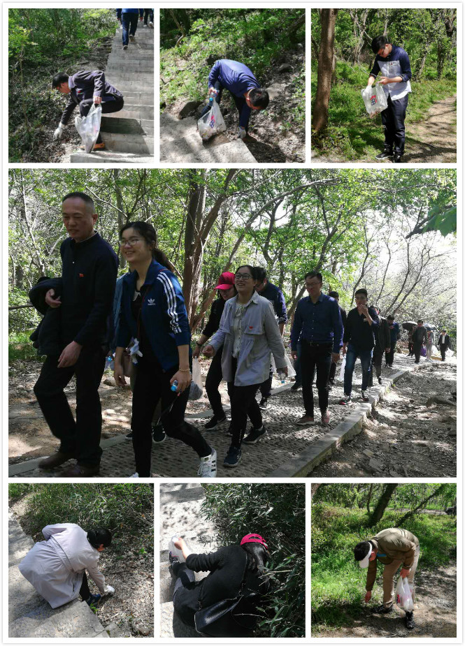 在烈士紀念碑前,全體黨員佩戴黨徽面對黨旗莊嚴宣誓,重溫入黨誓詞并向革命先烈鞠躬致敬。隨后通過參觀安徽革命烈士事跡陳列館了解歷史真相,追思革命先烈豐功偉績,學習先烈志士先進事跡,在講解員的生動解說中,大家深刻體會了革命先烈為人民幸福前仆后繼的獻身精神,學習了革命先烈對黨忠誠的崇高風范。參觀結束后,黨員們從陵園出發登頂大蜀山,沿途拾撿垃圾,還烈士一片長眠凈土。在我們的影響下,登山群眾紛紛加入到綠色行動中來,撿起小道上丟棄的空水瓶、零食包裝。。。更有親子行的父母教育孩子要以我們為榜樣,從小養成不隨地亂扔垃圾的好習慣,為美化生活環境做出自己的小小努力。
