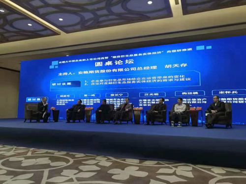由中國證券監督管理委員會安徽監管局、安徽省人民政府金融工作辦公室、大連商品交易所主辦,安徽省證券期貨業協會、安徽上市公司協會、安糧期貨股份有限公司協辦的《安徽省期貨服務實體經濟高級研修班》于11月9日在合肥舉行。受安糧期貨的邀請,公司董事長兼總經理朱亮、副總經理夏一鳴及相關業務部負責人參加了會議。會上講師們分別就未來的宏觀經濟形勢、期貨市場發展運行特點以及企業如何利用期貨市場進行風險管理等課題作了精彩演講,夏一鳴副總經理代表公司對貿易企業如何在經營過程中充分利用期貨市場的價格發現以及風險規避功能與參會嘉賓進行了現場交流。