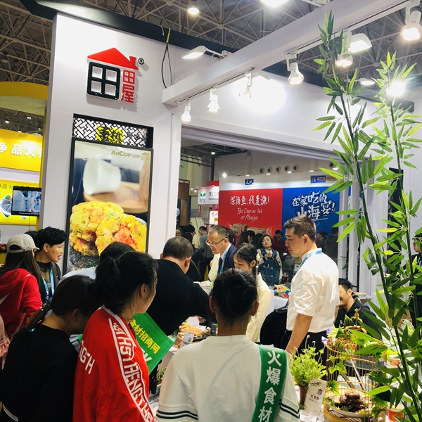 本次展會,除安糧米蘭蝦餅、魷魚藕餅、玉米烙等“田田屋”系列的老產品外,還有2019年最新推出的手撕藏香排、徽味臭鱖魚、虎皮蹄膀、九制陳皮骨、魚泥豆腐等餐飲食材。現場銷售人員工作積極,從產品加工到適用渠道都進行一一詳細的解說,加上現場合作伙伴精彩的廚藝展示,安糧新食材讓眾多食材經銷商流連忘返、贊不絕口。前來咨詢的參觀者絡繹不絕,參展客戶對我們的產品表現出極大的興趣,紛紛表示希望展會結束后進行深度對接。