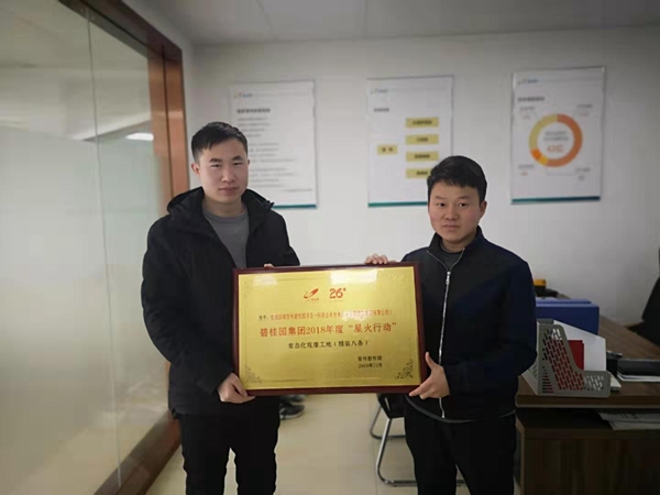 楊勇同志(右)代表團隊領取碧桂園“星火行動”觀摩工地獎