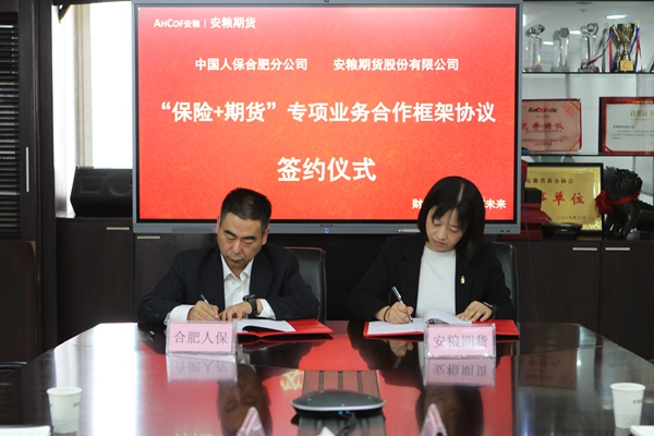 安糧期貨與人保財險合肥分公司簽訂“保險+期貨”專項業(yè)務合作框架協(xié)議