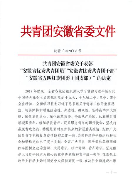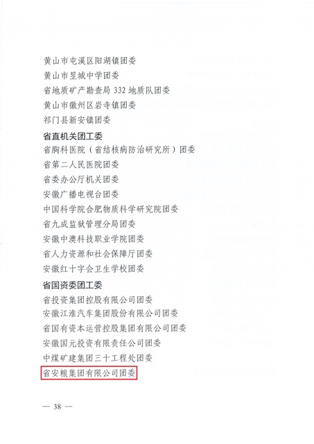 近日,共青團(tuán)安徽省委下發(fā)《關(guān)于表彰 2019 年度“安徽省優(yōu)秀共青團(tuán)員”“安徽省優(yōu)秀共青團(tuán)干部”“安徽省五四紅旗團(tuán)委 (團(tuán)支部)”的決定》(皖青〔2020〕6號(hào))》,安糧集團(tuán)團(tuán)委被授予“安徽省五四紅旗團(tuán)委”稱號(hào)。