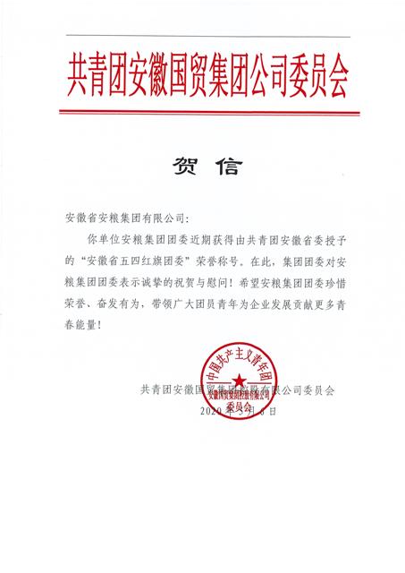 安糧集團(tuán)團(tuán)委榮獲“安徽省五四紅旗團(tuán)委”稱號(hào)