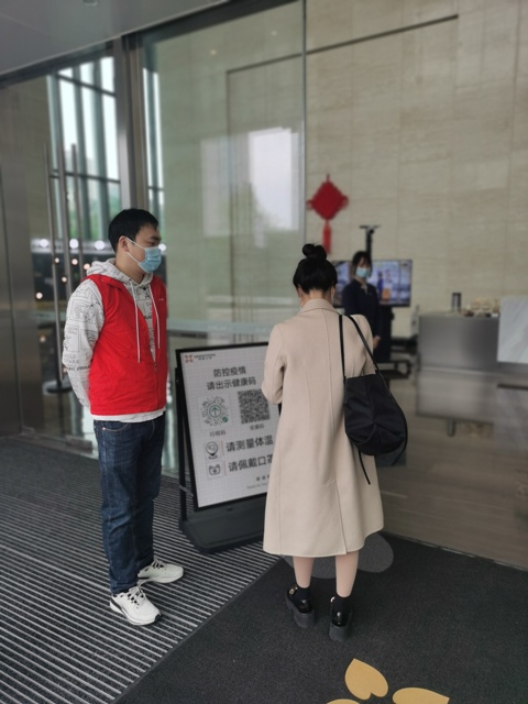 面對突如其來的新一輪嚴峻疫情,早高峰時期員工進入大樓前的雙碼核驗和測量體溫工作,導致在入口處排起長隊,影響同事們按時到崗,這給安糧中心物業管理帶來了難題。安糧團委在集團黨委的指示下聞令而動、迅速集結,來自集團團委各下屬支部的團員青年志愿者們,在做好個人防護的基礎上,穿起“紅馬甲”,主動申請投身到疫情防控工作中,大大加快了早高峰通行效率。