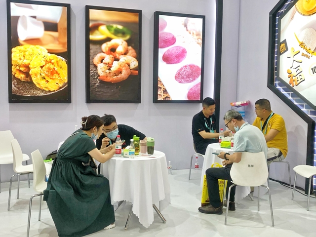 會上,業務人員為有意向的客戶耐心講解產品原料及工藝,介紹田田屋品牌理念和公司優勢,并針對客戶所在地區的飲食及消費習慣推薦適合產品,模擬了早餐、團餐、外賣、宴席等不同消費場景。現場烹飪試吃和熱情周道的服務使得展位人頭攢動,很快吸引了各渠道客戶的廣泛關注,并與諸多客戶達成合作意向。