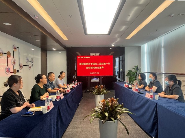 7月19日下午,合肥市中級(jí)人民法院“法官進(jìn)企業(yè)”活動(dòng)走進(jìn)安糧期貨,安糧期貨黨支部書記、總經(jīng)理韓文輝熱情接待了中院民二庭馬莉法官一行,雙方舉行了專題座談交流會(huì)。