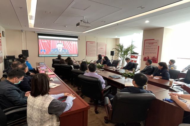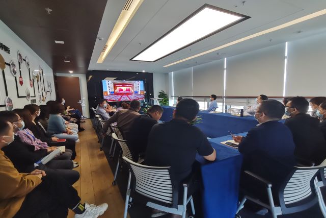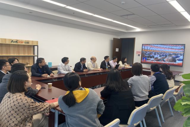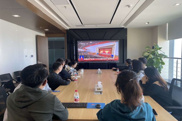 當天上午,在安糧中心3208會議室內,安糧集團黨委書記曹訓立等黨委委員,團委委員,集團、控股支部黨員,部門負責人以及子公司黨員領導干部、統戰人員代表集中收看了開幕直播盛況,同志們聚精會神地聽、專心致志地記,仿佛置身于大會現場。