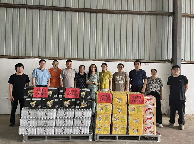 入夏以來,安徽多地開啟高溫模式,安糧實業(yè)于7-8月開展了“夏日送清涼”活動,慰問下屬工廠奮斗在一線的員工們,將防暑降溫物資送到基層員工手中,為高溫酷暑下堅守生產(chǎn)一線的員工撐起“遮陽傘”。