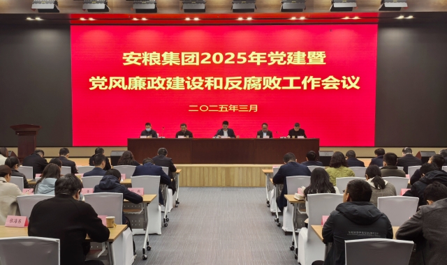 3月20日,安糧集團召開2025年黨建暨黨風廉政建設和反腐敗工作會議。公司黨委書記、董事長吳國杰出席會議并講話,公司黨政班子、紀委委員,本部中層助理以上成員,各二級公司領導班子成員及有關黨群、紀檢部門負責人、主要黨支部負責人參加會議。