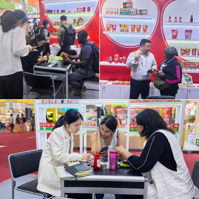 在食品展區,本次以番茄沙司系列為核心,不僅推出青椒洋蔥味、蘑菇味等多款差異化創新口味,更搭配PET瓶裝、帶嘴立袋兩種新型包裝,融合獨特的南美風味,憑借高顏值與優口感贏得全球采購商青睞,市場反饋熱烈。截至目前,已與非洲、中東、東南亞及“一帶一路”沿線核心市場的采購商,初步達成十個貨柜的番茄沙司采購意向,覆蓋多區域主流消費需求。