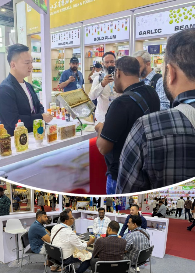 蜂蜜產品通過邀請采購商現場試吃巢蜜,直觀傳遞產品“純天然”核心特質,成功為展位聚集超高人氣。來自中東、東南亞采購商圍繞巢蜜的規格、品質與業務員展開多輪洽談;其中,孟加拉國采購商已就液態蜂蜜產品明確采購意向,雙方當前已進入實質性合作磋商階段,有望快速轉化為穩定訂單。