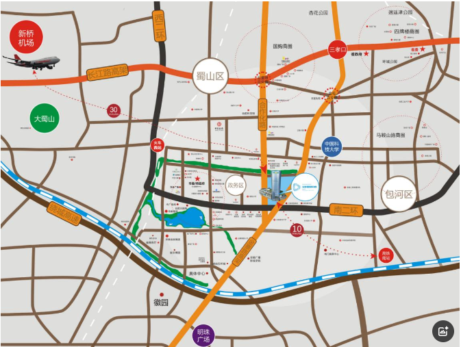 安糧國貿購物中心位于安徽省合肥市蜀山區金寨南路 811 號(金寨南路與南二環交口西北角),為政務、蜀山與包河三區交匯的黃金核心,南二環、金寨路及合作化路三大主干道交匯的稀缺區位。合肥市政府政務中心、奧體中心、合肥大劇院等構筑起集政務辦公、文化演藝、體育盛會、高端商務于一體的復合型價值生態圈,為項目注入源源不斷的消費動能與品質客群。